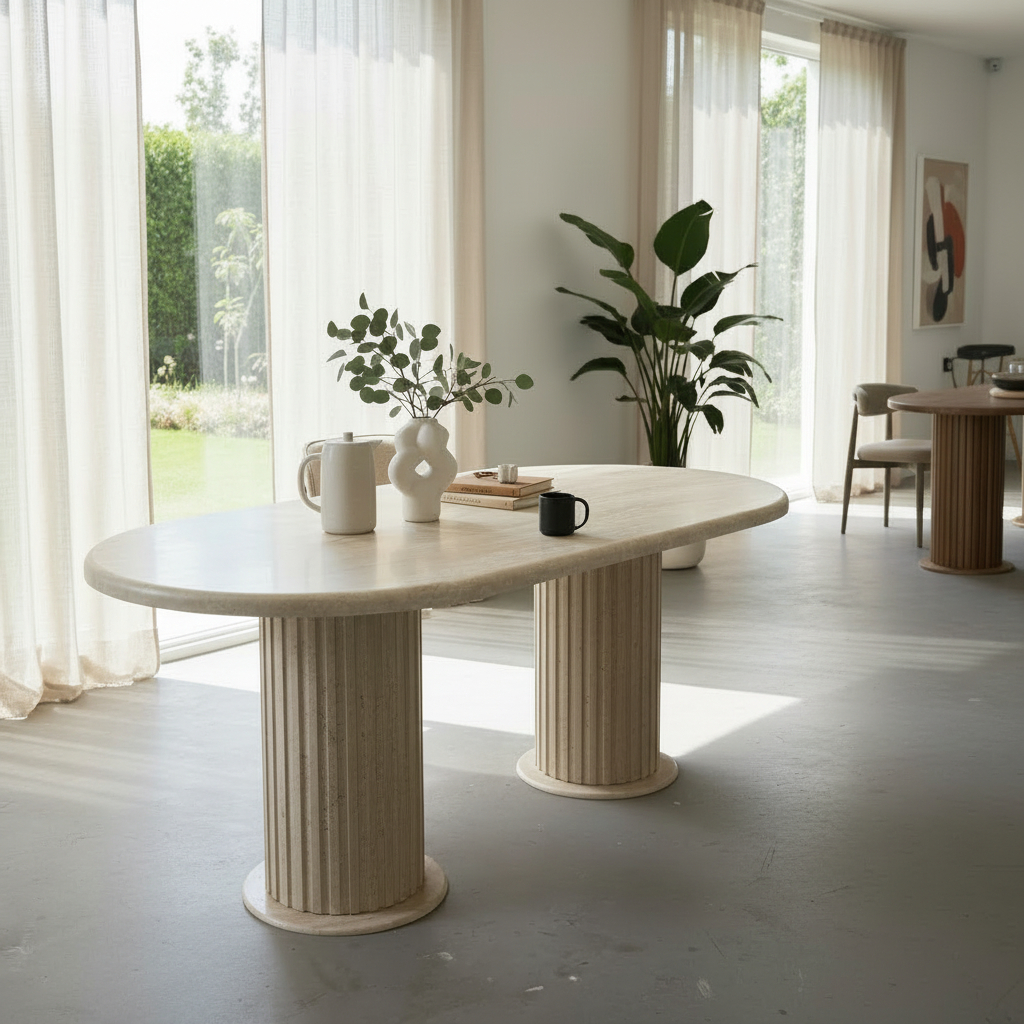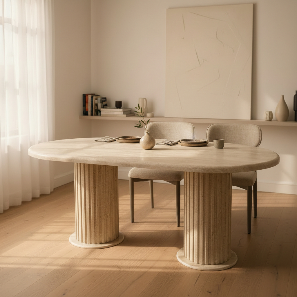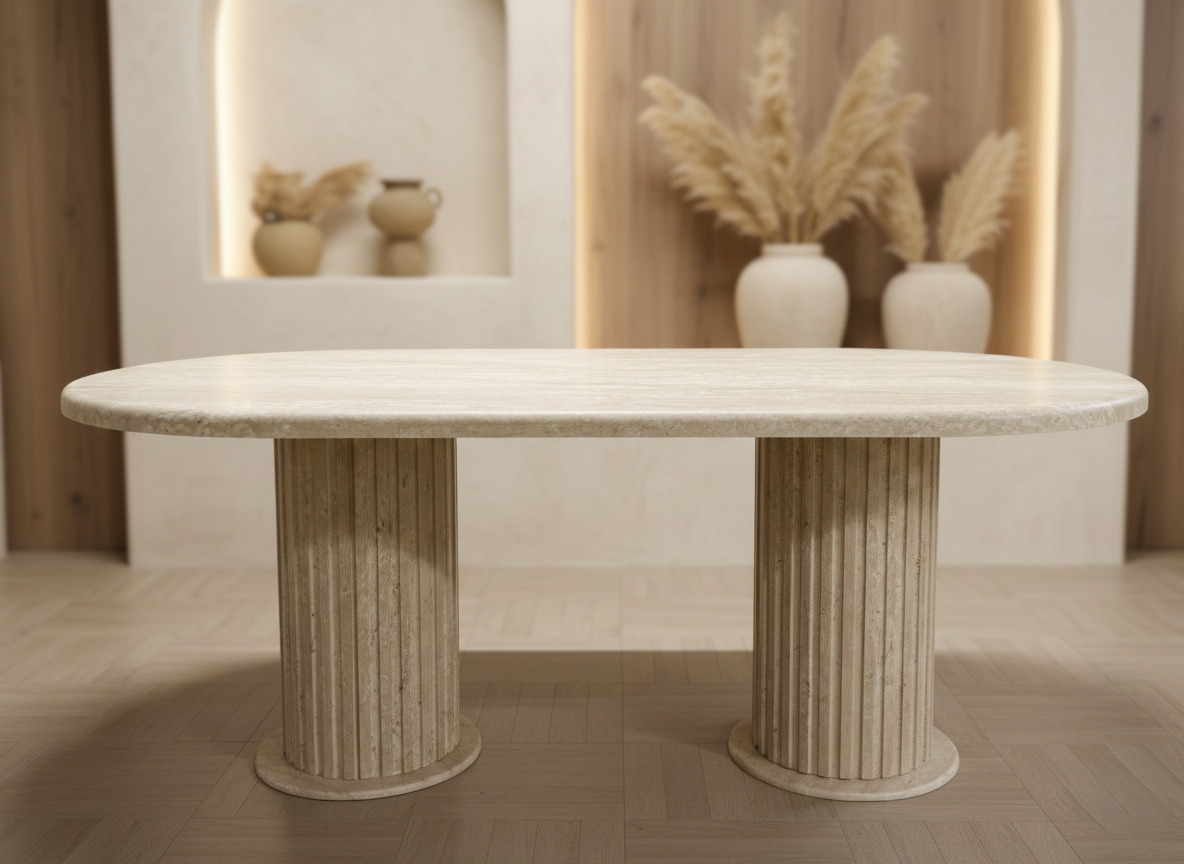 Günlük kullanımdan özel davet sofralarına kadar her anınıza eşlik eden bu masa; mutfak, yemek odası ya da showroom alanlarında doğal, şık ve davetkâr bir atmosfer oluşturur. Bohem stilin sade ama etkileyici ruhunu yansıtan tasarımıyla dekorasyonunuza zarif bir dokunuş katar.